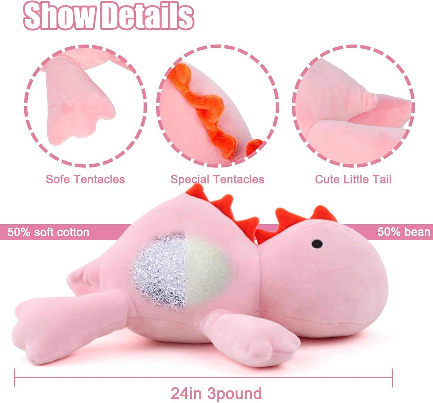 Popmeme Weighted Dinosaur Plush Throw Pillowd 24 3 5lbs Pink Dinosaur Weighted Stuffed Animal Cuddle Plushies For Kids Birthday